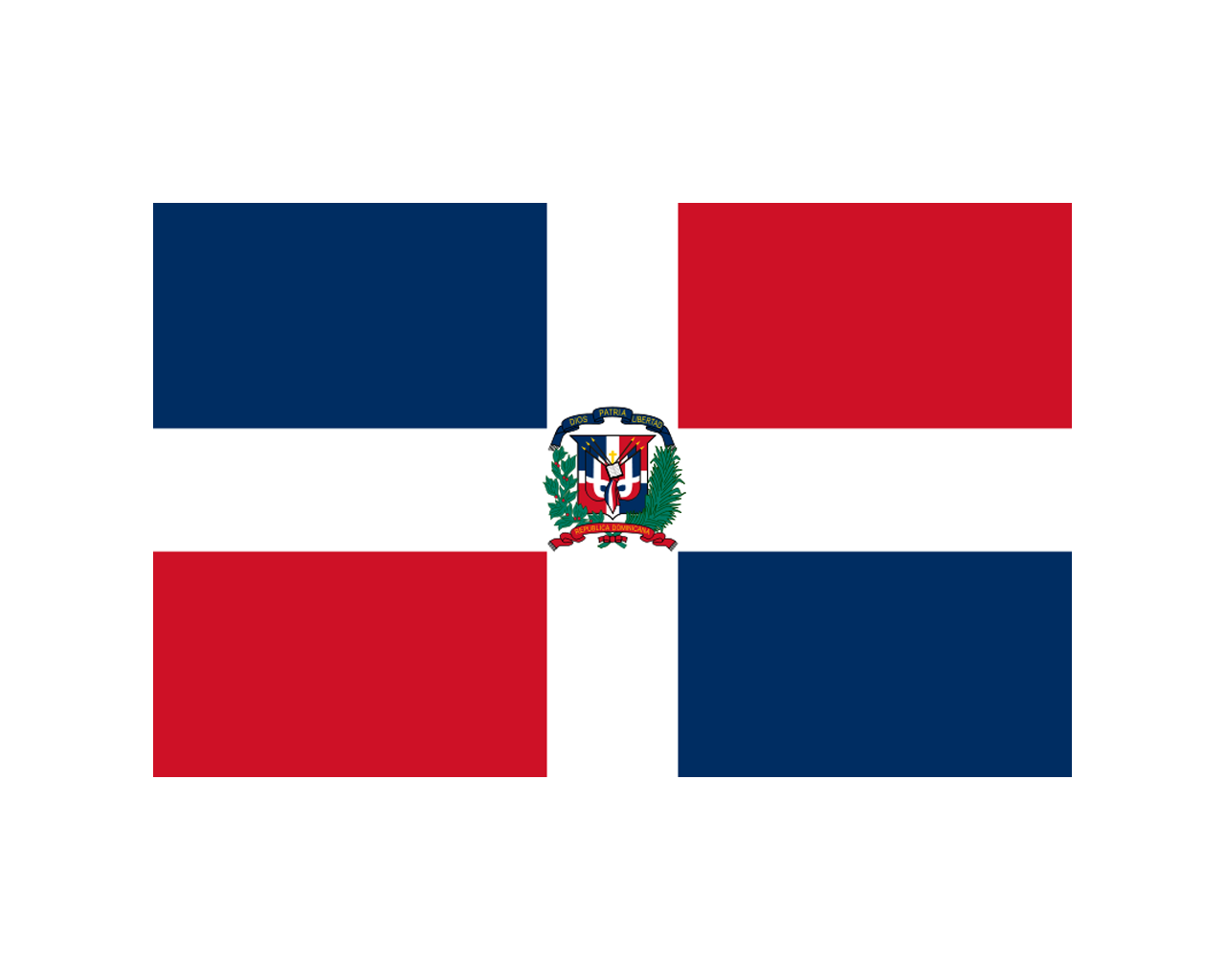 多米尼加共和國(The Dominican Republic),簡稱多米尼加,國名意為“星期天、休息日”,位置位于加勒比海伊斯帕尼奧拉島東部,首都圣多明各。多米尼加國旗呈長方形,長與寬之比為3∶2。白色寬條十字將旗面分成四個相等的橫長方形,左上方和右下方為藍色,右上方和左下方為紅色。白色十字交叉處繪有國徽圖案。紅色象征國家創建者為爭取自由、獨立而進行的火與血的艱苦斗爭,還象征奮斗者的鮮血;藍色象征自由;白色十字代表宗教信仰,也象征人民的奮斗和犧牲。中心圖案為盾徽。盾面由國旗顏色和圖案構成。中間有一本圣經,其上方為黃色十字,圣經和十字代表該國人民的宗教信仰,大多數人信奉天主教。圣經兩旁懸掛著國旗,表明人民捍衛國家主權的信心。盾徽兩側飾有月桂和棕櫚枝葉,上端的藍色綬帶上用西班牙文寫著“上帝、祖國、自由”,下端的紅色綬帶上用西班牙文寫著“多米尼加共和國”。