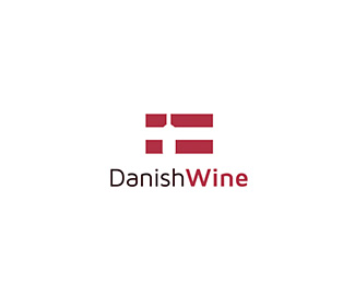 丹麥葡萄酒概念標志設計,融入國旗、葡萄酒瓶元素,利用負形空間構成了這個概念設計,以酒紅色作為主識別色。