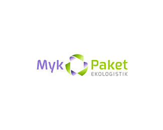 MYKPAKET生態包裝送貨公司標志設計,以環保為主題創作的圖形,使用紫色和綠色作為識別色。