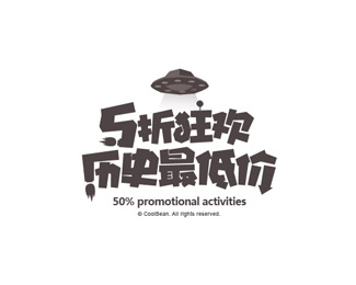 活動的標語是“5折狂歡歷史最低價”,設計師巧妙的融入的飛碟、火箭噴霧、箭頭元素,與活動主題詞想關聯。