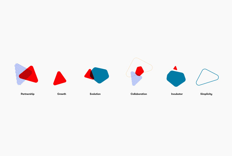 logo的特點是兩個簡單的、基于幾何七巧板的重疊形狀,旨在代表企業和租戶之間的合作關系。